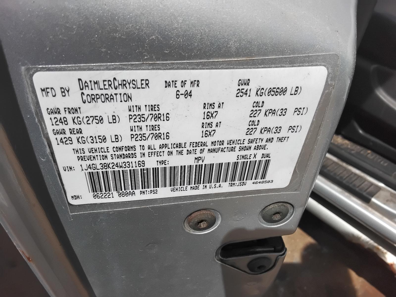 VIN: 1J4GL38K24W331169