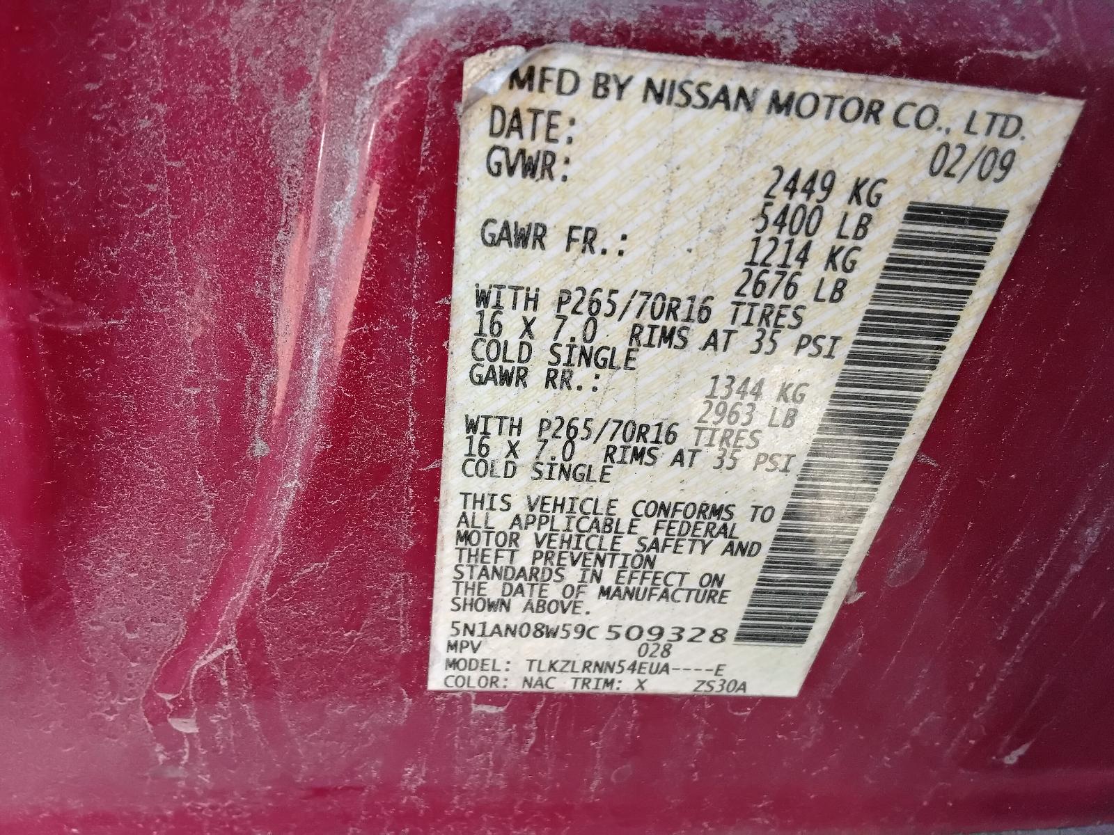 VIN: 5N1AN08W59C509328