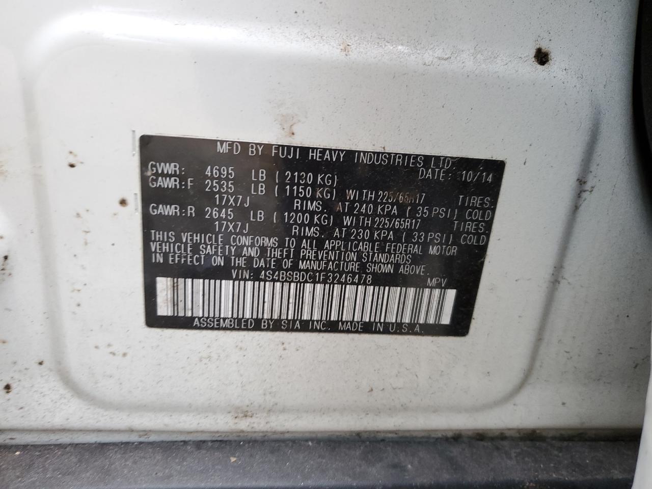 VIN: 4S4BSBDC1F3246478
